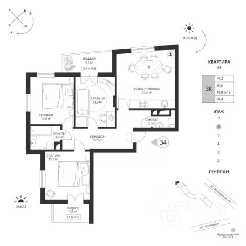 Жилой квартал "SEVEN" - Комплекс из семи 9-ти этажных домов - Современные и комфортные планировки - Класс энергоэффективности В (высокий) - Огороженная и охраняемая территория внутреннего двора - Полноценный пост охраны - Видеонаблюдение - Видеодомофоны с возможностью контроля доступа с смартфона - Отделка подъездов по дизайн проекту - Алюминиевые входные группы - Проходные подъезды - Качественные и безопасные входные двери - Бесшумные грузопассажирские лифты с остановкой в уровень земли и отделкой из нержавеющей стали - Качественные серый ключ - Автономное газовое отопление - Окна из цветного профиля - Лоджии остеклены (алюминиевые ограждающие конструкции) - Окна в пол и архитектурные балконы на верхних этажах - Современное благоустройство двора с детскими площадками, местами отдыха взрослых, площадка для стрит-бола и занятий спортом, обустроенная площадка для выгула собак. Сделайте ваш выбор в пользу высокого качества жизни. Сданный дом ( дом 1 ) : + Безналичный расчет + Рассрочка на 2 года + Ипотека под готовое жилье + Материнский капитал + Военная ипотека Строящийся дом ( дом 2 ) : + Субсидированная ипотека (IT-ипотека и семейная ипотека) + Материнский капитал + Военная ипотека Не упустите возможность приобрести жилье в ЖК "Seven". Ждем вашего звонка для получения дополнительной информации и организации просмотра. 3-комнатная квартира с отделкой от застройщика в районе Московский в городе Калининград.