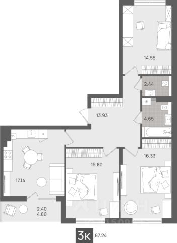 Больше подробностей вы можете узнать по телефону отдела продаж. Звоните! 3-комнатная квартира в новостройке с отделкой в Светлогорске.