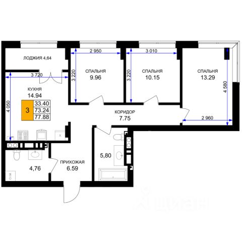 Высокие потолки 2,7 м создают ощущение простора. На 7- этаже высота потолков 3,02 м и панорамным остеклением.