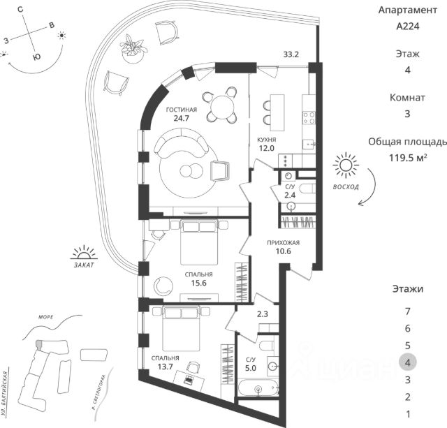 *Не является публичной офертой. Указанные цифры являются прогнозными. Расчет выполнен по состоянию на декабрь 2025. Реальная доходность может отличаться от расчетной и зависит от множества факторов, включая рыночную конъюнктуру, расходы на содержание объекта (налоги, ремонт, коммунальные платежи), а также возможные периоды простоя. Данный расчет не является гарантированным и не представляет собой финансовую рекомендацию. Продается 3-комнатная квартира первичка В Светлогорске.