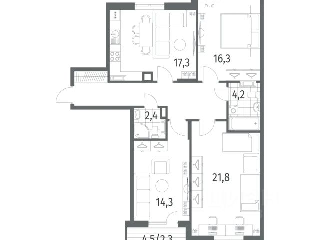 Арт. 118886027 Код объекта: 1646220. Продается современная трехкомнатная квартира в сером ключе на улице Лазурной в городе Гурьевске-ЖК "RiverPark (РиверПарк).Кирпично-монолитный дом 2024 года постройки.Автономное газовое отопление. Лифт.В доме установлены фильтры для очистки воды..Просторная, светлая квартира идеально подойдет для комфортной жизни.Общая площадь-74 метра.Три комнаты-11,12 и 13 метров- позволяют организовать пространство по вашему усмотрению.Два санузла-удобство и комфорт для всех членов семьи. Можно преобразовать один из санузлов в гардеробную либо постирочную, установив штанги для одежды на вешалках, а также стиральную машинку и компактную навесную сушилку для белья.Две лоджии, которые обеспечивают дополнительное пространство и возможность наслаждаться свежим воздухом, а также обустройство уютного уголка.Квартира в сером ключе готова для реализации ваших дизайнерских решенийСоздайте уникальный интерьер с нуля!Ухоженная придомовая территория с детской площадкой.Достаточное количество парковочных мест.Дом находится в спокойном районе с развитой инфраструктурой.Рядом идет строительство современной школы и детского сада.Хорошая транспортная доступность.До Калининграда на машине-10 минут, до побережья-30 минут.