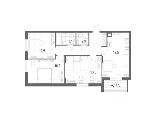 Светлая и уютная квартира.Евро трешка.Общей площадью 50,5 кв.м. Кухня 12,4 кв.м. Комната 9,3 кв.м. Комната 8,8 кв.м. Комната 10,3 кв.м. Санузел 3,15 кв.м. Коридор 6,55 кв.м. Автономное газовое отопление. Бонусом к квартире прилагается подвал. Дом расположен в районе с развитой инфраструктурой. В шаговой доступности Гимназия,детские сады,торговые помещения,медицинские центры.Виктория,Пятерочка.Спар. Рядом автобусная остановка. Малоэтажная застройка,много парковочных мест,детские площадки,много зелени. В 10 минутах ходьбы парк культуры,парк света,сенситивный парк. Отличная развязка окружных дорог,до центра Калининграда 7 минут,до моря 20-30 минут,до аэропорта 15 минут. Один взрослый собственник.