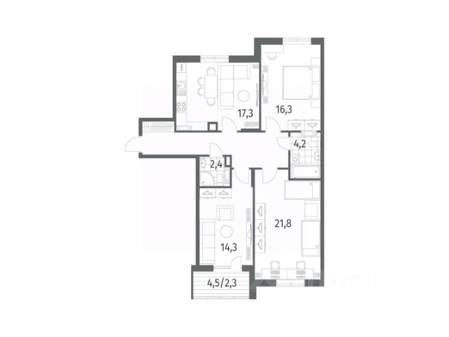 Арт. 118886027 Код объекта: 1646220. Продается современная трехкомнатная квартира в сером ключе на улице Лазурной в городе Гурьевске-ЖК "RiverPark (РиверПарк).Кирпично-монолитный дом 2024 года постройки.Автономное газовое отопление. Лифт.В доме установлены фильтры для очистки воды..Просторная, светлая квартира идеально подойдет для комфортной жизни.Общая площадь-74 метра.Три комнаты-11,12 и 13 метров- позволяют организовать пространство по вашему усмотрению.Два санузла-удобство и комфорт для всех членов семьи. Можно преобразовать один из санузлов в гардеробную либо постирочную, установив штанги для одежды на вешалках, а также стиральную машинку и компактную навесную сушилку для белья.Две лоджии, которые обеспечивают дополнительное пространство и возможность наслаждаться свежим воздухом, а также обустройство уютного уголка.Квартира в сером ключе готова для реализации ваших дизайнерских решенийСоздайте уникальный интерьер с нуля!Ухоженная придомовая территория с детской площадкой.Достаточное количество парковочных мест.Дом находится в спокойном районе с развитой инфраструктурой.Рядом идет строительство современной школы и детского сада.Хорошая транспортная доступность.До Калининграда на машине-10 минут, до побережья-30 минут.