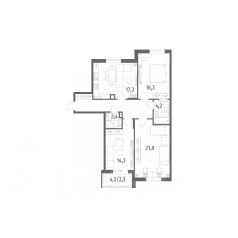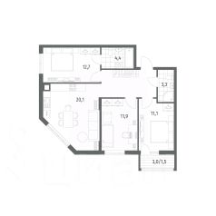 Продается квартира площадью 73.5 м² на 1 этаже 1 секции в River Park от компании ГК "ТРЕСТ". Площадь кухни 20.1 м².