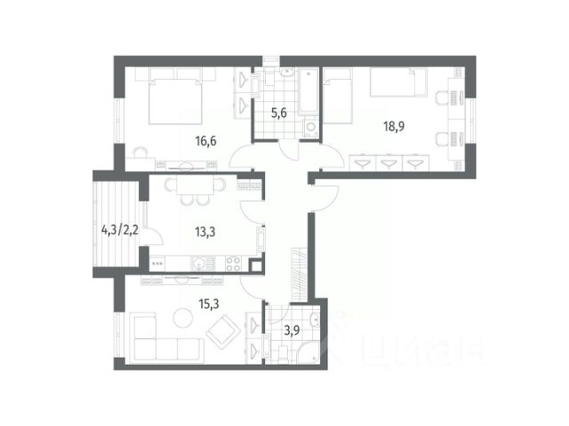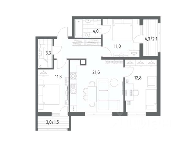 Продается квартира площадью 85.2 м² на 3 этаже 1 секции в River Park от компании ГК "ТРЕСТ". Площадь кухни 13.3 м².