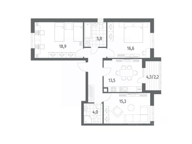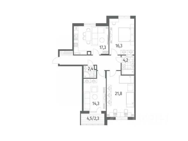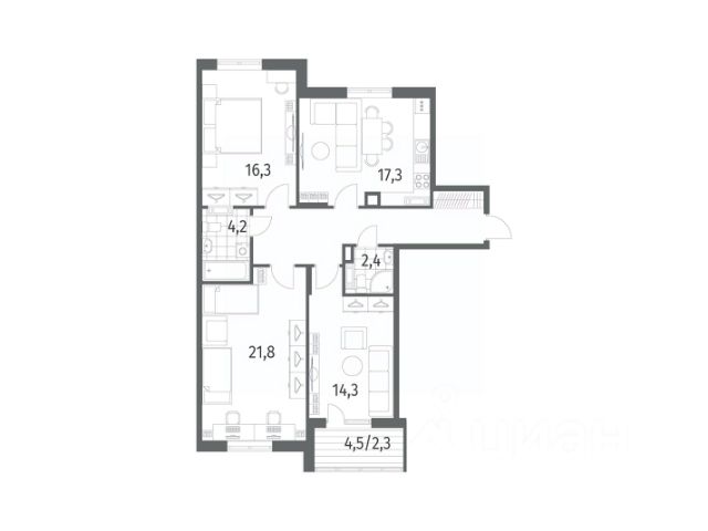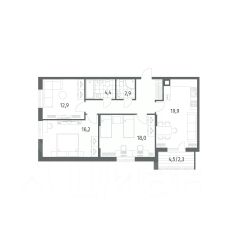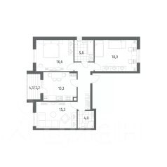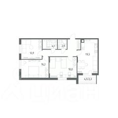 Продается квартира площадью 92.8 м² на 3 этаже 1 секции в River Park от компании ГК "ТРЕСТ". Площадь кухни 17.3 м².