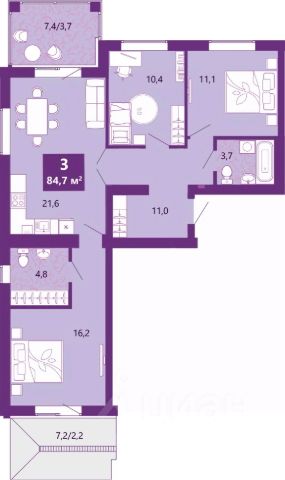 Продается трехкомнатная квартира от застройщика с предчистовой отделкой в ЖК "Сиреневый бульвар" на 2 этаже. Общая площадь: 98.7 кв.м., жилая: 39.6 кв.м., площадь просторной кухни-столовой: 21.4 кв.м. Квартира угловая, очень светлая, естественная вентиляция при открытии окон. В квартире два балкона и одна лоджия, один раздельный санузел. Наличие террасы в квартире дает возможность для создания зон отдыха в кругу семьи и друзей. Высота потолков 2.7 м. Дом введен в эксплуатацию. Дом монолитный, многоподъездный, высотой 4 этажа. Квартира находится в 9-й секции в корпусе 1.1. На этаже 4 квартиры. В подъезде 1 грузовой лифт. Начало строительства - 4 квартал 2022 года. В настоящее время строительство завершено, дом сдан в 1 квартале 2024 года. Оформление сделки по договору купли-продажи. Жилой комплекс "Сиреневый бульвар" это 5 клубных 4-х этажных домов на 16 квартир и 9 домов с несколькими секциями. Вместе эти дома формируют собственное закрытое пространство с дворовыми территориями, спортивными и детскими площадками, местами отдыха и коммерческими помещениями. Дизайнерские входные группы и небольшие приусадебные участки квартир нижних этажей, обилие зелени, удобные зоны отдыха всё устроено с особым вниманием. Жителей комплекса ждут просторные квартиры комфорт-класса с огромными террасами, мастер-спальнями, гардеробными и кухнями-гостиными. В каждом доме предусмотрены места для хранения велосипедов, кладовые помещения на цокольных этажах. "Сиреневый Бульвар" позволит своим жителям получить все преимущества городского комфорта и максимум плюсов от жизни на природе. Для жителей и гостей предусмотрены парковочные места, вся территория оборудована круглосуточной системой видеонаблюдения. В шаговой доступности находятся детский сад, начальная школа и продовольственные магазины. Жилой Комплекс "Сиреневый Бульвар" - уникальный проект, расположенный в Калининграде - балтийской жемчужине, в городе с богатым прошлым, комфортным настоящим и радужным будущим. Именно Калининград место встречи России и Европы. Жилой Комплекс "Сиреневый Бульвар" находится в географическом центре города. Ленинградский район (бывшие Ротенштейн, Марауненхоф, Лип, Девау, Палве и Куммерау) это северная часть Калининграда, где в довоенные годы располагался Старый город. Жилой комплекс находится рядом с Верхним озером, Нижним прудом и ещё 12 городскими водоемами. Территория всего проекта занимает 21,9 гектаров и находится между улицами Арсенальная, Пехотная и 4-ой Большой окружной. Аккредитация в банках: "Сбербанк России", ПАО Банк "ВТБ", ПАО "Газпромбанк", ПАО Банк "ФК Открытие", ПАО "Промсвязьбанк". #2wUC5v 3-комнатная квартира с лоджией в Калининграде.