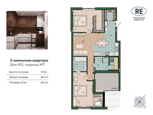 Продаётся 3-комнатная квартира в строящемся доме (Дом 2 очередь 8), срок сдачи: IV-кв. 2026, общей площадью 84.94 кв.м., на 3 этаже. Жилой квартал "Невский парк" - один из самых зеленых жилых кварталов Калининграда. Квартал, строящийся по принципу "город в городе" впечатляет своим масштабом и одновременно продуманностью всех деталей, как самого комплекса в целом, так и отдельно стоящих домов, и квартир. Озеленению здесь, действительно уделено особое внимание, и название "Невский парк" говорит само за себя. Квартиры в этом жилом квартале выгодная инвестиция как в качество собственной жизни, так и в перспективе дальнейшей продажи. ЖК "Невский парк" - современные, качественные, красивые дома с архитектурной подсветкой и индивидуальными дизайнерскими решениями в зонах общего пользования, включая подъезды. Квартал строится надёжной компанией ЗАО КалининградСтройИнвест", с 29-летним опытом на строительном рынке. В эксплуатацию уже сданы первые дома квартала, в которые уже заселились счастливые собственники. Преимущества и основные характеристики жилого квартала: Удобное расположение: -10 минут до центра города -20 минут до аэропорта "Храброво" -30 минут до берега моря Жилье комфорт-класса, в котором предусмотрено всё для удобства и уюта проживания: умный домофон и видеонаблюдение для вашей безопасности; возможность установки кондиционеров и антенн без ущерба для фасада здания. Спорт и активный образ жизни в "Невском парке": -велодорожки на протяжении всего квартала; -велопарковка и зона обслуживания велосипедов с подкачкой колес в каждом доме; -площадки для различных видов спорта. Здесь всё продумано до мелочей: Развитая инфраструктура внутри квартала: -современные игровые площадки; -зона выгула собак; -закрытые колясочные и велосипедные помещения, доступные только для жителей; -санузлы в каждом доме для удобства жильцов. Особенные детали для уюта и комфорта проживания: -автономное отопление; -углубленные лоджии и французские балконы; -высококачественные двери индивидуального дизайна; -заниженные подоконники на высоте 700 мм; -цветной оконный профиль производства Германия и двухкамерные стеклопакеты; -двойной воздухообмен на кухне. Просторные красивые подъезды и общественные пространства внутри дома: -уникальный и эффектный дизайн; -доступная среда - входы без ступеней и проходные лифты; -алюминиевые входные группы с двойным магнитом; -бесшумные лифты с повышенным скоростным режимом; -энергоэффективное освещение, установленное на датчиках движения; -навигация и шумоизоляция лифтовых шахт. Воспользуйтесь возможностью жить в одном из самых интересных, безопасных, красивых и комфортабельных жилых комплексов Калининграда - в домах "Невский парк"! Сделайте ваш выбор в пользу высокого качества жизни. Сданные дома : + Безналичный расчет + Рассрочка на 2 года + Ипотека под готовое жилье + Материнский капитал + Военная ипотека Строящиеся дома : + Субсидированная ипотека (IT-ипотека и семейная ипотека) + Материнский капитал + Военная ипотека Не упустит
