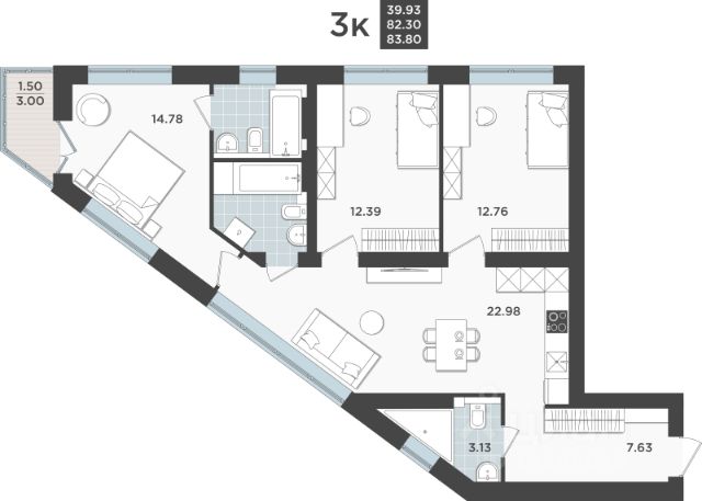 Продаётся 3-комнатная квартира в строящемся доме (Дом 2 очередь 8), срок сдачи: IV-кв. 2026, общей площадью 84.94 кв.м., на 3 этаже. Жилой квартал "Невский парк" - один из самых зеленых жилых кварталов Калининграда. Квартал, строящийся по принципу "город в городе" впечатляет своим масштабом и одновременно продуманностью всех деталей, как самого комплекса в целом, так и отдельно стоящих домов, и квартир. Озеленению здесь, действительно уделено особое внимание, и название "Невский парк" говорит само за себя. Квартиры в этом жилом квартале выгодная инвестиция как в качество собственной жизни, так и в перспективе дальнейшей продажи. ЖК "Невский парк" - современные, качественные, красивые дома с архитектурной подсветкой и индивидуальными дизайнерскими решениями в зонах общего пользования, включая подъезды. Квартал строится надёжной компанией ЗАО КалининградСтройИнвест", с 29-летним опытом на строительном рынке. В эксплуатацию уже сданы первые дома квартала, в которые уже заселились счастливые собственники. Преимущества и основные характеристики жилого квартала: Удобное расположение: -10 минут до центра города -20 минут до аэропорта "Храброво" -30 минут до берега моря Жилье комфорт-класса, в котором предусмотрено всё для удобства и уюта проживания: умный домофон и видеонаблюдение для вашей безопасности; возможность установки кондиционеров и антенн без ущерба для фасада здания. Спорт и активный образ жизни в "Невском парке": -велодорожки на протяжении всего квартала; -велопарковка и зона обслуживания велосипедов с подкачкой колес в каждом доме; -площадки для различных видов спорта. Здесь всё продумано до мелочей: Развитая инфраструктура внутри квартала: -современные игровые площадки; -зона выгула собак; -закрытые колясочные и велосипедные помещения, доступные только для жителей; -санузлы в каждом доме для удобства жильцов. Особенные детали для уюта и комфорта проживания: -автономное отопление; -углубленные лоджии и французские балконы; -высококачественные двери индивидуального дизайна; -заниженные подоконники на высоте 700 мм; -цветной оконный профиль производства Германия и двухкамерные стеклопакеты; -двойной воздухообмен на кухне. Просторные красивые подъезды и общественные пространства внутри дома: -уникальный и эффектный дизайн; -доступная среда - входы без ступеней и проходные лифты; -алюминиевые входные группы с двойным магнитом; -бесшумные лифты с повышенным скоростным режимом; -энергоэффективное освещение, установленное на датчиках движения; -навигация и шумоизоляция лифтовых шахт. Воспользуйтесь возможностью жить в одном из самых интересных, безопасных, красивых и комфортабельных жилых комплексов Калининграда - в домах "Невский парк"! Сделайте ваш выбор в пользу высокого качества жизни. Сданные дома : + Безналичный расчет + Рассрочка на 2 года + Ипотека под готовое жилье + Материнский капитал + Военная ипотека Строящиеся дома : + Субсидированная ипотека (IT-ипотека и семейная ипотека) + Материнский капитал + Военная ипотека Не упустит