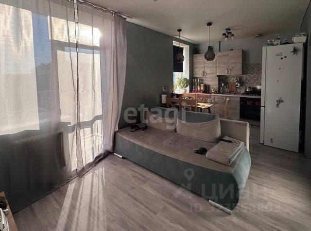 - В кухне-гостиной панорамные окна, выход на большую лоджию 5.9 м2 с панорамным остеклением.