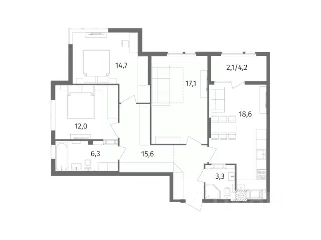 3-комнатные квартиры в жилом комплексе АльпыЖК «Альпы»