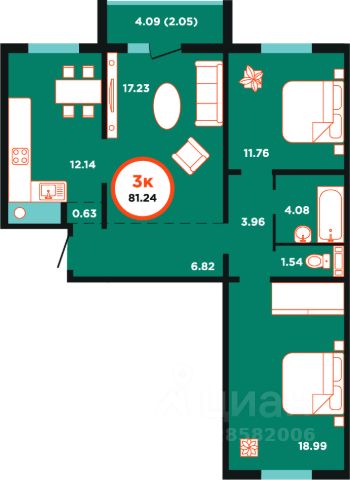 • ✓ В базе Циан 27 3-комнатных квартир в ЖК Гагаринский в Калининграде