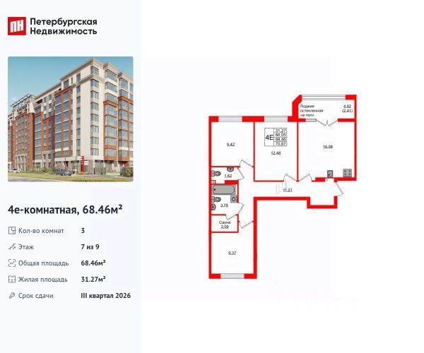 Продается уютная, семейная 3-комнатная квартира от застройщика в жилом комплексе "Консул" в Ленинградском районе. Удобная, классическая, функциональная европланировка, большая кухня-гостиная 16.08 м², вместительная прихожая 11.21 м². Общая площадь квартиры - 68.46 м², жилая 31.27 м², высота потолка 2.7 м. Квартира продается с отделкой "Серый ключ с возможностью дозаказа NORD LINE ++". Что особенного в ЖК "Консул"? • Развитая инфраструктура • Двор без машин • Закрытая, огороженная территория • Квартиры с отделкой - заезжай и живи • Детские площадки для детей разных возрастов • Подземный паркинг и кладовые помещения