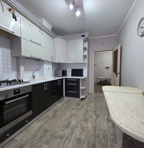 - В кухне-гостиной панорамные окна, выход на большую лоджию 5.9 м2 с панорамным остеклением.