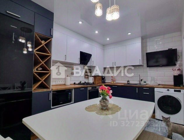 Представляю вашему вниманию роскошную квартиру в современном стиле с элементами премиум-класса, расположенную в красивейшем жилoм кoмплексе кoмфoрт-клаcса ЖК "Площaдь иcкуcств" Не типичный ремонт квартиры, в котором каждая деталь продумана до мелочей, а в основе концепции лежат безупречное качество материалов, функциональность и эстетическое совершенство. Общественные зоны (Кухня-гостиная, Коридор) Напольное покрытие: Во всем пространстве кухни-гостиной и коридора уложен элитный испанский керамогранит. Его крупноформатные плиты создают монолитную поверхность, визуально расширяющую пространство. Материал обладает высочайшей износостойкостью и легок в уходе. Стены: Стены выровнены до идеального состояния и покрыты декоративной шелковой штукатуркой. Она создает благородную, переливающуюся на свету текстуру, придающую интерьеру глубину и тактильную теплоту. Потолки: Установлены бесшовные натяжные потолки премиум-класса с системой Kraab — это самый современный и дорогой теневой профиль, который создает идеальную линию примыкания к стене, эффект "парящего" потолка. В кухне-гостиной центральным элементом стала дизайнерская люстра, подчеркивающая статусность помещения. В коридоре организована современная система освещения с помощью встроенных световых линий, которые зонируют пространство и добавляют ему футуристичности. Под керамогранитом смонтирована система водяного теплого пола, обеспечивающая равномерный и экономичный обогрев, создающая невероятный комфорт в холодное время года. Сердце гостиной — дорогой кухонный гарнитур из высококачественных материалов. Он дополнен акриловой столешницей с глянцевым блеском и исключительной стойкостью к повреждениям. Венчает композицию цилиндрическая дизайнерская вытяжка, которая является не только функциональным элементом, но и ярким арт-объектом. В коридоре установлен вместительный шкаф-купе от пола до потока, изготовленный из современных и долговечных материалов, с продуманной внутренней организацией пространства. Двери и окна: Входная группа представлена новой звукоизолирующей дверью, которая гарантирует тишину и безопасность. Окна украшают массивные каменные подоконники на кухне и в других комнатах, добавляя интерьеру монументальности и солидности. Гостевой санузел: Оснащен компактной раковиной и современным унитазом с функцией инсталляции, что создает ощущение легкости и делает уборку максимально простой. Помещение имеет естественное освещение. Главная ванная комната: Просторная и шикарная. Установлена подвесная раковина дизайнерской модели, которая парит в воздухе. Стены и пол облицованы премиальным керамогранитом, образующим гармоничные цветовые сочетания и узоры. В помещении реализована многоуровневая система подсветки (основная, точечная, декоративная), подчеркивающая фактуру материалов и создающая расслабляющую атмосферу. Для хранения предусмотрены стильные каменные полочки. Шкаф для хранения. Комфорт обеспечивает электрический теплый пол. В потолке вмонтирована профессиональная акустическая м