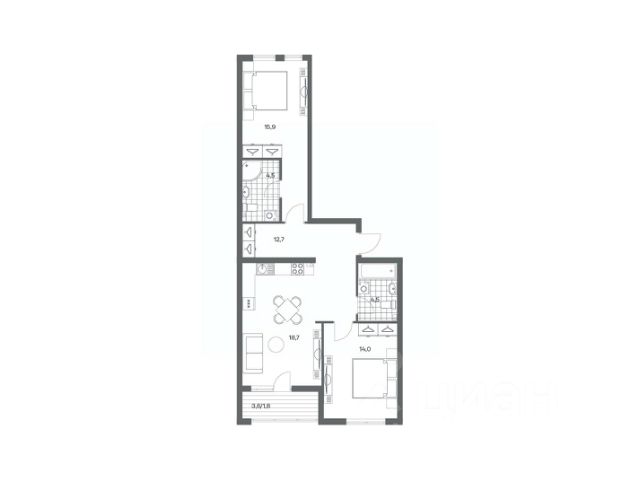 -Каждое помещение имеет продуманные пропорции, высота потолков 3 метра.