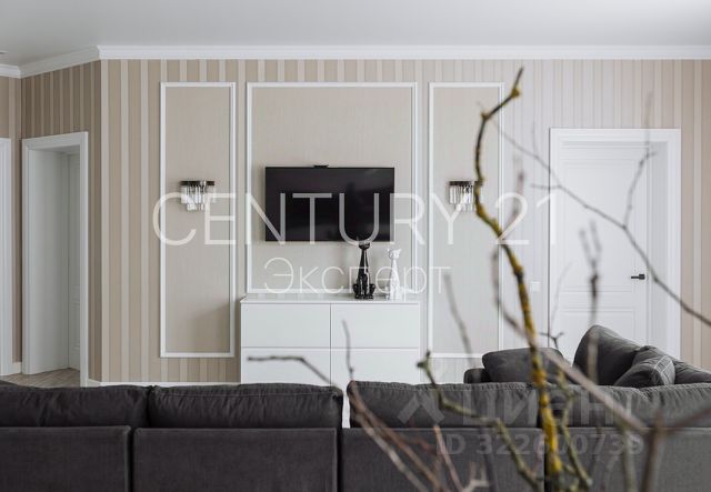 - В кухне-гостиной панорамные окна, выход на большую лоджию 5.9 м2 с панорамным остеклением.