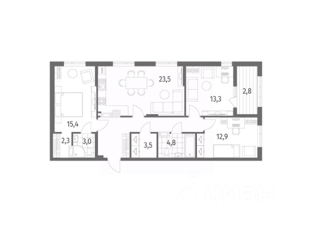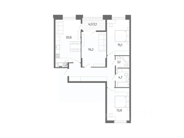 Продаётся 3-комнатная квартира в сданном доме (Третьяковская, 5А), срок сдачи: III-кв. 2020, общей площадью 101.4 кв.м., на 4 этаже. Показы онлайн