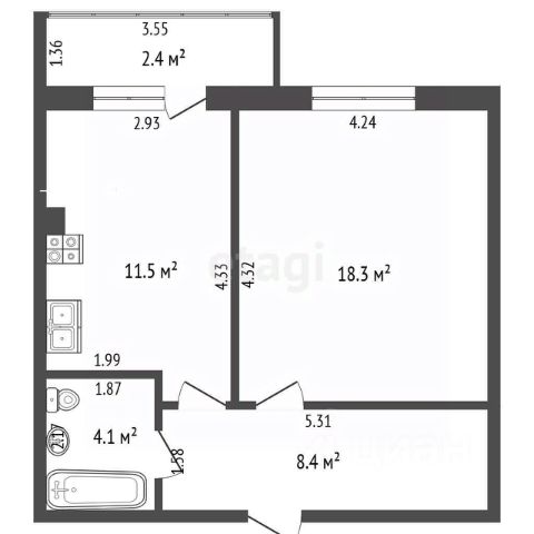 Квартира расположена на 3 этаже четырехэтажного кирпичного дома, общая площадь квартиры 35.6 кв.м, жилая 17.07 кв.м, кухня 8.88 кв.м, совмещённый санузел 4,29 кв.м. Есть балкон.