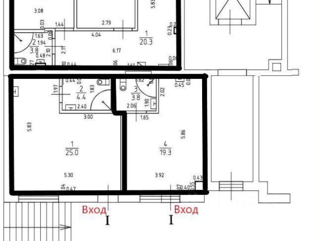 +Расположена на 2-м этаже, на который ведет закруглённая лестница. На первом этаже кухня 9,6 кв. м., изолированная комната 15 кв.м., смежные комнаты 14 кв.м. и 15 кв.м., совмещённый с/у 4 кв.м, коридор 5 кв.м., дверь к лестнице на мансардный этаж, где комната 25 кв.м.
