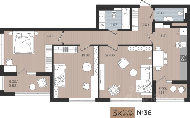 Просторная 3-комн. квартира с предчистовой отделкой в ЖК "Сиреневый бульвар" на 4 этаже. Общая площадь: 84.9 кв.м., жилая: 40.3 кв.м., площадь просторной кухни-столовой: 21.4 кв.м. Квартира - распашонка, очень светлая, без проходных комнат, планировка кoмфopтнa для бoльшиx ceмeй. В квартире одна лоджия, два совмещенных санузла. Высота потолков 2.7 м.