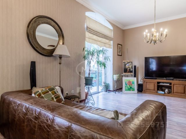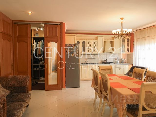 Кухня-столовая и гостиная разделены барной стойкой. Кухня укомплектована кухонной мебелью, посудомоечной машиной, духовкой, варочной панелью, вытяжкой, каменной раковиной, холодильником DAEWO. Гардеробная оборудована мебелью ALFA. Спальня - трехстворчатым шкафом, телевизором, угловым компьютерным столом. Ванная комната, душевая и санузел выложены кафелем. На всем цокольном этаже теплый пол.