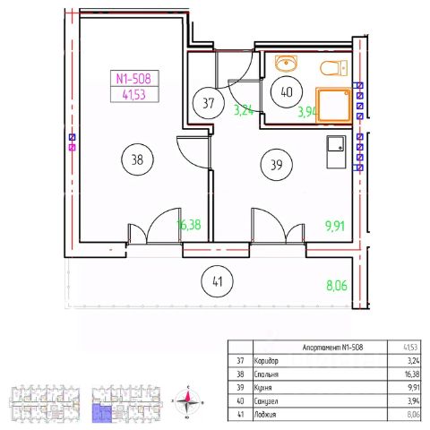 В каждом корпусе по 59 апартаментов (однокомнатные, двухкомнатные и трёхкомнатные) с функциональными планировками и просторными открытыми лоджиями с видом на море.
