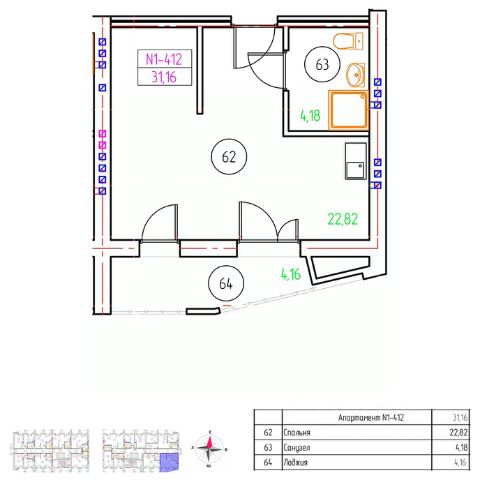 Площадь апартаментов от 31 кв. м до 60 кв. м. Также в продаже есть коммерческие помещения для бизнеса. На старте продаж доступен широкий выбор планировок.
