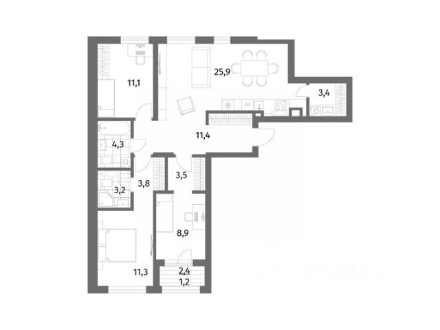 | 🔷 Средняя цена за м2: | 113 тыс. руб./м² |