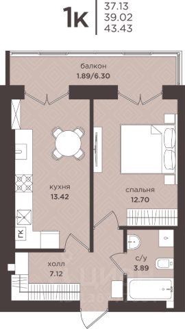 Продается квартира площадью 42.7 м² на 3 этаже 1 секции в River Park от компании ГК "ТРЕСТ". Площадь кухни 22.1 м².