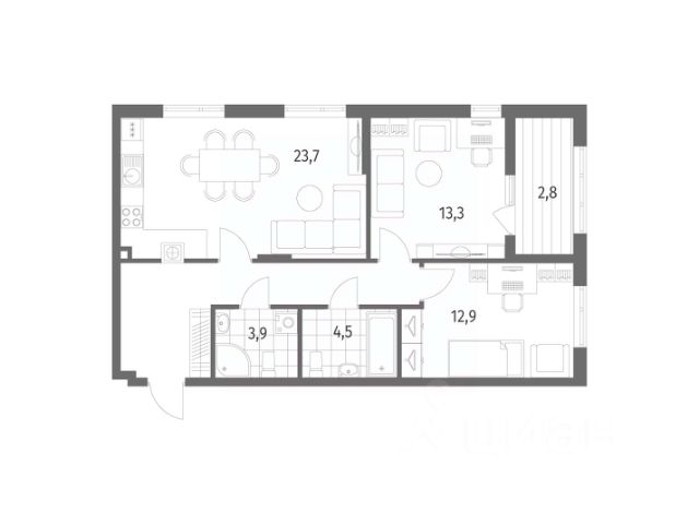 • ✅ Минимальная площадь: 70,3 м²