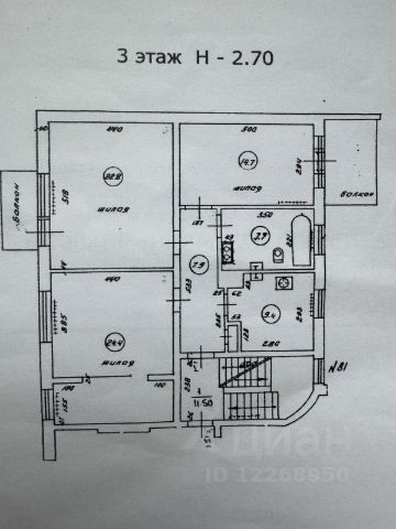 - 3 изолированных комнаты общей площадью 60 кв.м