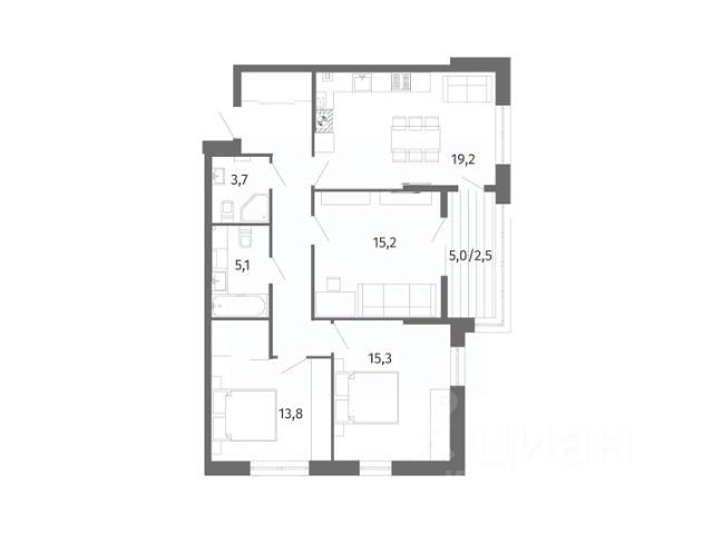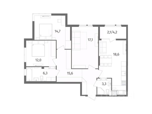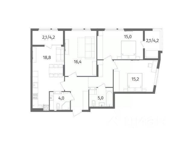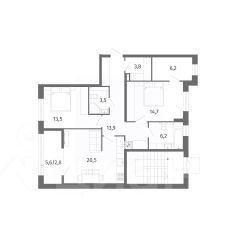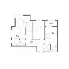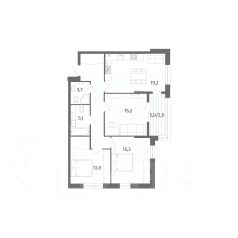 Квартира общей площадью 88,2 кв. м., просторная кухня-гостиная 19,00 кв. м., с выходом на лоджию 4,2 кв. м., площадь комнат: 15,1 кв. м., 15,0 кв. м., 16,3 кв. м., ванная комната 5,2 кв. м., комната для гардероба 4,2 кв. м. Автономное отопление. В квартире выполнен ремонт, установлена вся сантехника, произведена разводка электричества с выводами под освещение, установлены розетки и выключатели. На стенах декоративная штукатурка, на полу ламинат в холе и ванной плитка под мрамор. Автономное отопление и водо-подогрев: установлен автоматический двухконтурный газовый котел с закрытой камерой сгорания и радиаторы с терморегуляторами.