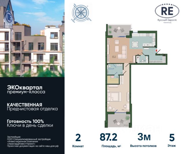 Прямая продажа от застройщика! Готовность проекта - 100%. Ключи сразу после сделки! Впечатляющая квартира с предчистовой отделкой, потолками 3 м и панорамным WOW-видом на парк. ЭКО квартал "РусскаЯ ЕвропА" — это современное пространство для жизни, состоящее из монолитно-кирпичных зданий переменной этажности. Застройщиком представлены разнообразные планировки квартир: от уютных студий до просторных четырехкомнатных квартир, включая двухуровневые решения и европланировки. Квартиры сдаются в предчистовой и чистовой отделке Особенности ЖК "Адрес Счастья" ЭКОквартала "Русская Европа": Проект комфорт-класса в престижном Ленинградском районе города; Ультрасовременные экологические инженерные решения в каждом доме и каждой квартире; Элегантное решение композиции фасадов от архитектурного бюро с мировым именем и две победы на международных архитектурных премиях URBAN AWARDS; Впервые в Калининграде lounge-зоны на крышах домов; Европейский подход к благоустройству: площадь с фонтанами, ландшафтный парк, детские и спортивные площадки; Панорамное остекление квартир поражают своими головокружительными видами на архитектуру комплекса и зеленые виды парков; Продуманная концепция инфраструктуры: Школа, детский сад и поликлиника на территории комплекса, уютные кафе и рестораны, супермаркет, фитнес-студия, службы сервиса, детский центр развития. Транспортная доступность: Удобный выезд на Московский проспект, улицу Гагарина и Большую Окружную; В пешей доступности Суздальский парк и городской парк ДЕВАУ Квартира с предчистовой отделкой Качественная предчистовая отделка позволит проявить творческий подход к созданию уникального дизайна квартиры, а все черновые работы, включая установку внутренних перегородок, разводку электричества и мокрых точек уже будут выполнены. Каждая квартира отличается особыми преимуществами и подготовлена к системе умный дом: - Панорамные окна от потолка до пола; - Собственная терраса; - Мастер спальня; - Гардеробная; - Баня в квартире (!) - Дополнительная, сверхнормативная шумо/гидроизоляция стен и перекрытий - Индивидуальная приточно-вытяжная вентиляция с фильтрацией и рекуперацией Официальный отдел продаж проекта "Русская Европа" предлагает своим клиентам специальные условия приобретения квартир в рамках программ ипотечного кредитования от банков-партнеров. Больше подробностей о квартирах жилого комплекса "Адрес Счастья" и уникальное предложение для вашего бюджета - по телефону отдела продаж! Звоните!