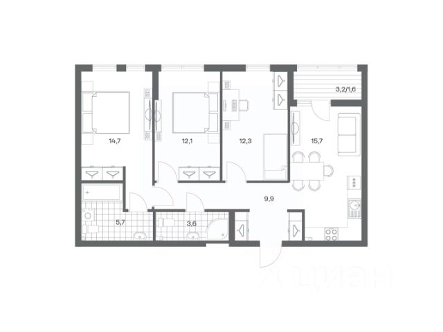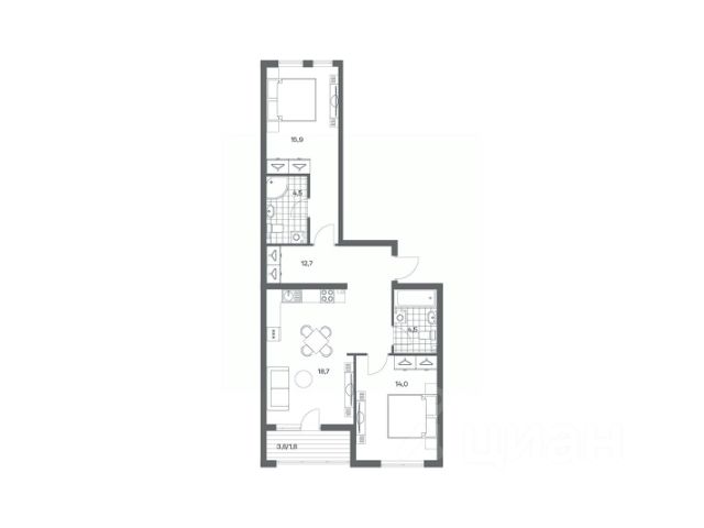 Продается квартира площадью 75 м² на 8 этаже 4 секции в Гагарина 30 от компании ГК "ТРЕСТ". Площадь кухни 15.4 м². Жилой комплекс комфорт-класса "Гагарина 30" расположен в Ленинградском районе Калининграда на улице Юрия Гагарина. Жилой комплекс включает в себя три корпуса высотой 9-18 этажей. Срок сдачи намечен на 1 квартал 2028 года. Жилой комплекс расположен в географическом центре города Калининград. Он знаменит Музеем янтаря, Королевскими воротами, Верхним и Нижним прудами, районами Альтштадт и Лебенихт. Из жилого квартала за 10 минут можно добраться до парков Тихий и Кальтхёфер. В жилом комплексе 457 квартир, из них 55% двух- и трёхкомнатные. Доступны варианты с просторными кухнями-гостиными, мастер-спальнями и кладовыми. На первых этажах расположены квартиры с приватными открытыми террасами. На верхних этажах лоджии с холодным остеклением, панорамными и увеличенными окнами. Высота потолков первого и последнего этажей - 3 м (кроме первого корпуса), остальных 2,72 м. Интерьеры МОП-ов выполнены в минималистичном стиле с контрастными, дополняющими друг друга материалами. Благодаря использованию светлых оттенков, природных текстур и декоративного освещения, пространство имеет большое количество света. В лифт-холле предусмотрена зона ожидания с мягкой мебелью. Почтовые ящики вынесены в тамбур, а рядом со стойкой домофона предусмотрена консоль для сумок. Дизайн-проект разработан студией Right design. Для удобства автомобилистов созданы подземные паркинги: на 125 машиномест и кладовые помещения. В паркинг можно будет спуститься на лифте комфортно людям, безопасно автомобилям!
