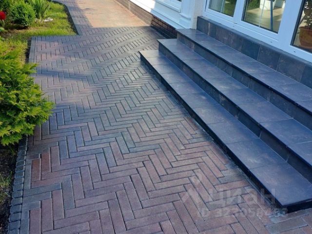 - огороженная территория, ворота откатные - открываются с пульта, возле дома выложена плитка;