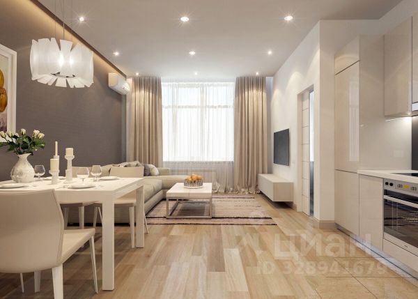 1. Кухня-гостиная (26,3 кв. м) с панорамными окнами, подоконниками из натурального камня, теплыми полами и встроенной кухней. В комплекте: посудомоечная машина, газовая плита и духовой шкаф. Есть выход на улицу.