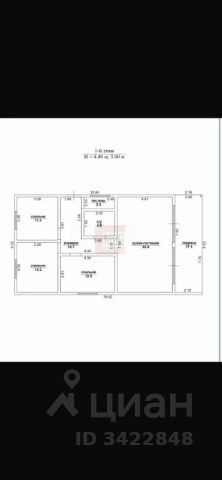 Планировка 1 этажа: Прихожая, кухня (17 кв. м), 2 проходные комнаты (по 16 кв. м), маленькая комната (8 кв. м), техническая комната, помещение под ванную (9 кв. м), туалет, гараж.