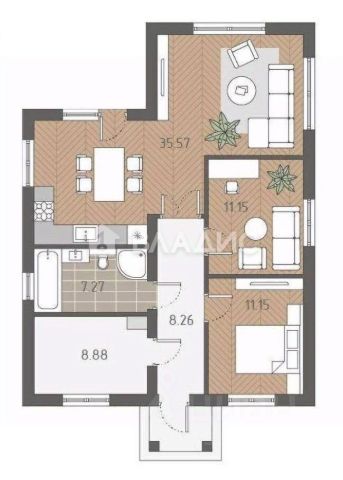 3 Спальня 18 кв.м (разделена гардеробом, зеркальная перегородка)