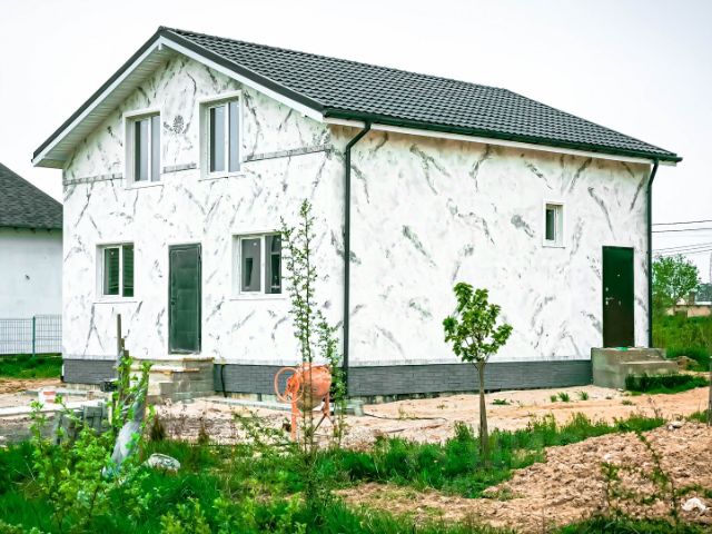 Уровень отделки - предчистовая: разводка электричества, разводка систем водоснабжения, отопления и канализации, выравнивание стен (под обои), цементно-песчаная стяжка пола, входная сейф дверь, стеклопакеты, теплый пол по 1 этажу, 2 этаж - радиаторы.
