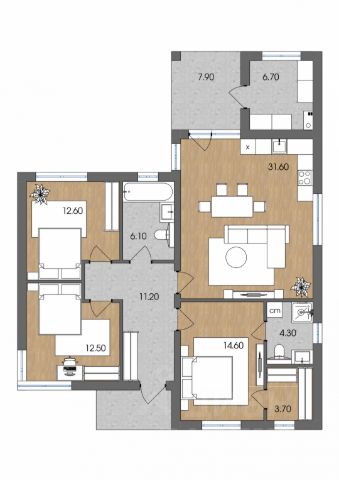 Код объекта: 1741003. Продается дом общей площадью 90,2 кв.м. в экологически чистом, развивающемся поселке Голубево Гурьевского района. Дом качественной постройки 2025г. Расположен на земельной участке площадью 600 кв.м. Категория земель: земли населенных пунктов. Разрешенное использование: для индивидуального жилищного строительства. Межевание: да (уточненная площадь). Правообладание: собственность. Количество комнат: 3 Кухня 12,3 кв.м. Изолированные комнаты: 14кв.м., 14,5кв.м., 31,5 кв.м. Санузел 5,9 кв.м. Терраса 4,8 кв.м. Фундамент - ленточный 800мм+ плита 150мм. Материал стен газосиликатные блоки АЭРОБЛОК. Кровля - металлочерепица. Крыша утеплена минеральной ватой. Полы- бетонная стяжка. Окна-стеклопакеты. Электроразводка. Двери входные металлические. Дом в предчистовой отделке, финишная штукатурка на стенах, готова под покраску, оклейку обоев. На полу стяжка, под напольное покрытие. ВОЗМОЖНО СДЕЛАТЬ ЧИСТОВУЮ ОТДЕЛКУ ОТ ЗАСТРОЙЩИКА. Коммуникации: Энергоснабжение подключено 15кВт. Газоснабжение с возможностью подключения, газ проходит по улице. Водоснабжение- центральное от поселка Канализация- септик Отопление - электрическое, электрокотел, теплый пол во всех помещениях, индивидуальные контуры. Система заземления. Для оттока отработанного воздуха на улицу установлен вывод вентиляции на крышу. Доступные подъездные пути. Дорога выложена ж/б плитами. Дом находиться в 10 мин. от центра Калининграда. В 5 мин. езды на автомобиле расположены: детский сад, школа, супермаркет. Ходит школьный автобус. Отличное расположение и транспортная доступность. Вблизи Вальбургский парк, Голубые озера, Калининградский залив, заповедные леса. Один собственник, без обременений.