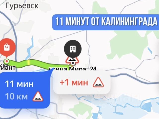 Выгодное расположение: 6 мин до Калининграда по трассе, рядом новый кардиоцентр, остановка школьного автобуса через дорогу.