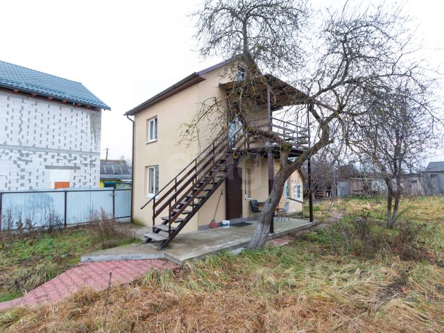 Дом 2005 года постройки, 135 кв. м. общей площади, двухэтажный. Расположен в тихом месте рядом с выездом на окружную дорогу. Отличительная черта - отказ от вредных для здоровья материалов и энергоэффективность. Дом очень комфортен для жизни, с хорошей вентиляцией и освещением солнцем. Фундамент ленточный бетонный. Полы бетонные монолитные с утеплением пенополистиролом. Стены из газосиликата толщина 30 см с наружной теплоизоляцией пенополистиролом 5 см и акриловой декоративной штукатуркой короед. Окна деревянные (сосна, клееный брус) белого цвета, со стеклопакетом. Кровля из битумной черепицы IKO Бельгия, на деревянной стропильной системе с дощатой обрешеткой и настилом осб. Штукатурка песчаноцементная и гипсовая. Балки перекрытия деревянные (сосна) частично открыты и декоративно обработаны. Лестница деревянная (ясень). Полы первого этажа облицованы плиткой, в зоне гостиной - натуральный паркет из ясеня. Санузел совмещенный. Отопление первого этажа напольное с дублированием радиаторами, второй этаж - с радиаторным отоплением. Газовый котел центрального отопления Dieditrich, есть резервный электрокотел в том же контуре, а также возможность отопления дровяной печью-камином (в гостиной). Водоснабжение из колодца, какнализация в локальную очистную станцию, ливневая канализация и дренаж вокруг дома, мощение вокруг дома клинкерный плиткой с бордюрами и дождеприемниками. Крыльцо бетонное полукруглое облицовано натуральным камнем, бордюр подпорной стены перед входом - бетонный на фундаменте с облицовкой натуральным камнем. Мощеная дорожка к парковке на 3 авто. Участок площадью 22 сотки (объединяет 3 участка), при желании можно построить еще один дом с общей парковкой. Наружное ограждение участка от дороги и проезда - капитальное - столбы и перемычки из облицовочного керамического кирпича Lode с решетками (построено в 2013 г), обсажено с внутренней стороны живой изгородью из туй. Въезд на парковку с улицы через откатные ворота с электроприводом и дистанционным управлением. На участке сооружен капитальный кирпичный наземный погреб с обсыпкой землей. Построен капитальный хозяйственный домик (технология как у основного дома, только на фундаментной плите и без декоративной штукатурки). Электроснабжение 3-хфазное, подземный кабель, Макс потребляемая мощность до 10 кВт. Оптоволоконный интернет в доме, охранная сигнализация. Плодовые деревья, включая 2 плодоносящих грецких ореха. Дополнительный колодец для полива огорода