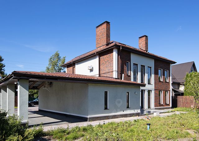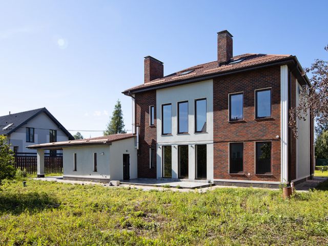Фасад утеплен полистиролом, покрыт декоративной штукатуркой, окрашен. Окна и панорамные двери стеклопакеты с трехкамерным профилем. Входные двери с двумя замками. Внутренние стены оштукатурены, выполнена внутренняя разводка электричества, выполнены вводы и выводы под канализацию, водоснабжение и электричество.