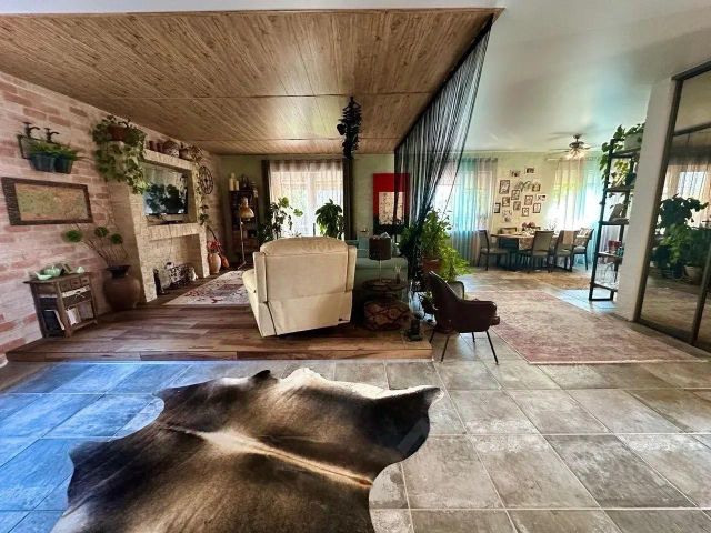 Дизайн-проект с авторским надзором. Венецианская штукатурка, фрески, кракелюр. Паркетная доска (Литва), лестница из искусственного камня. 1-й этаж: кухня-столовая с техникой Liebherr, Bosch, Siemens, гостиная с камином, гостевая с выходом на террасу, с/у, техкомната, отапливаемый гараж на 2 авто. 2-й этаж: мастер-спальня с с/у и гардеробной, 2 спальни с гардеробными, комната-мастерская, библиотека, постирочная, бельевая. Сантехника Villeroy & Boch, Hansgrohe, мебель Keuco. ТВ и аудио Sony, Apple TV. Мебель Италия, Финляндия.