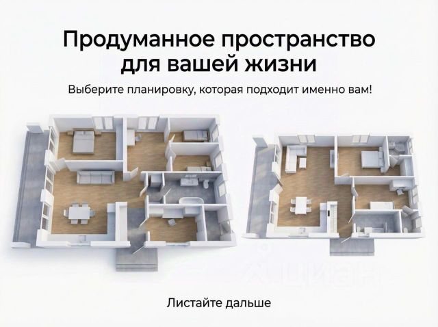 Внутри дома продумана каждая деталь: три комнаты, два совмещённых санузла, два балкона. Планировка позволяет максимально эффективно использовать пространство, создавая комфортные условия для всей семьи.