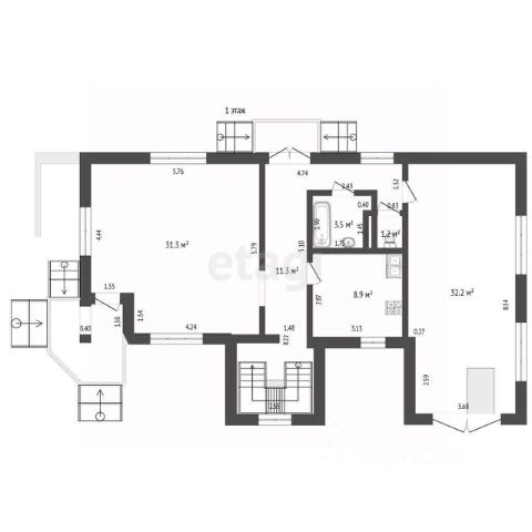 Представляет собой жилое помещение свободной планировки, где Вы можете воплотить свои идеи в жизнь!