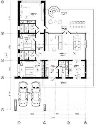 1 этаж:(77 м.кв.)Входная зона,гардеробная,2 санузла,гостиная совмещенная с кухней.