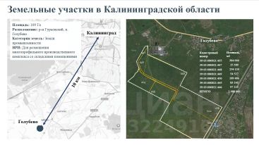 Продается земельный участок площадью 42 Га, расположенный вблизи поселка Сазоновка Гурьевского района Калининградской области, земли промышленности, для размещения производственно-складского комплекса. Есть презентация современного складского комплекса. До окружн...