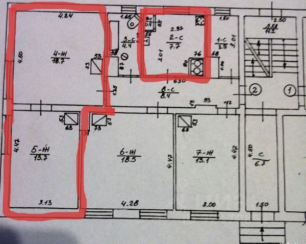 Продам 2 комнаты и кухню ( площадью 7,7 кв.м) в 4-х комнатной квартире, с/у и коридор общие. Кадастровый паспорт отдельный. Плюс подвал 10 кв.м, чердак 10 кв.м, кирпичный гараж во дворе и небольшой участок под огород. Печное отопление, холодна вода, бойлер электрический, подведен газ к дому (можно установить котёл и газовую плиту) Все окна заменены на пластиковые стеклопакеты из 5-и камерного профиля Требуется косметический ремонт Торг реальному покупателю